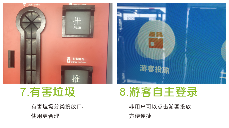 該設(shè)備是一款基于手機APP端和電腦端控制平臺的智能垃圾分類回收設(shè)備,包括用戶操作界面、中央控制系統(tǒng)、各類控制接口,AI物體識別、AI圖像追蹤、人臉識別、人體感應(yīng)模塊、嵌入式主板和二維碼掃碼模塊、環(huán)境溫度探測模塊、觸摸屏幕等。自主研發(fā)生產(chǎn)、外觀精致時尚、科技感爆棚,引領(lǐng)垃圾分類新潮流。